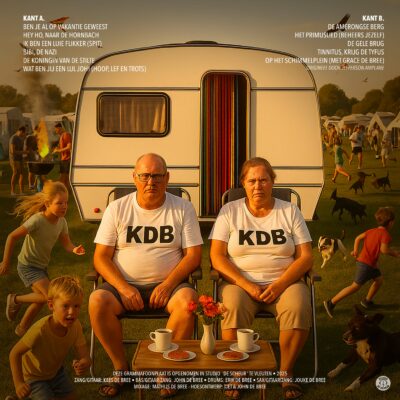 Voor deze Utrechtstalige Douwe Egberts punkers ben ik uitgegaan van de titel “Ben je al op vakantie geweest. Of moet je nog?” Een vakantie met regen op een te drukke camping in de caravan met de band liet ik generen door Chat GPT. Het interieur van de caravan maakte ik van echte bandfoto’s van het ouderlijk huis van Kees de Bree himself. De stickers op de caravan liet ik stuk voor stuk genereren door mijn collega Chat op basis van de kernwaarden van de band Kees de Bree.